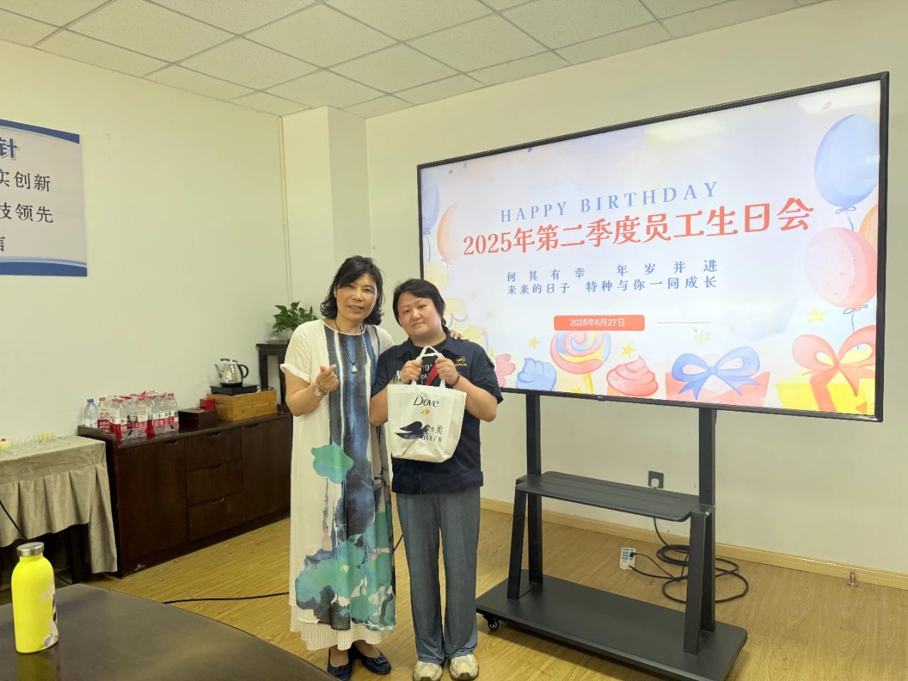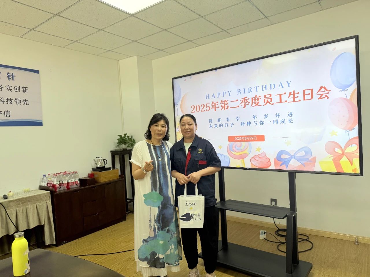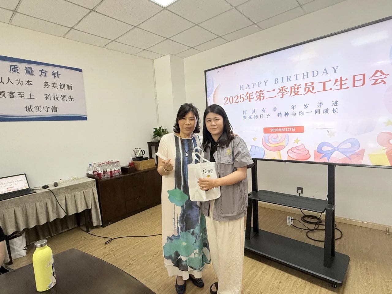 Kromě upřímných narozeninových přání a sladkých koláčů společnost pro každého oslava narozenin promyšleně připravila personalizované dary! Když byly dárky dodány, překvapené a potěšené úsměvy okamžitě rozsvítily jejich tváře. Toto exkluzivní gesto péče slouží jako nejteplejší uznání pro oddanou práci každého.