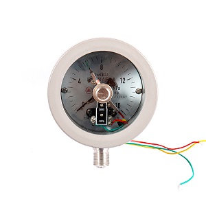 · Elektrické kontaktní zařízení: Skládá se ze tří elektrických kontaktů (obvykle kontaktů z slitiny stříbra s dobrou vodivostí a vysokou odolností proti opotřebení) a ukazatel je vybaven pohyblivým kontaktem, který lze upravit. Když tlak dosáhne nastavené hodnoty, pohybující se kontakt vytváří kontakt s odpovídajícím stacionárním kontaktem a výstupní přepínač (jako je poplach nebo startování/zastavení/zastavení ventilu čerpadla) je vygenerován pro automatický tlak.