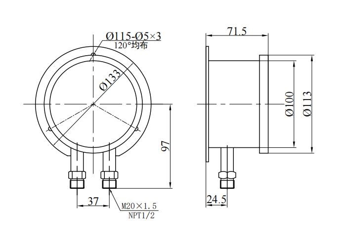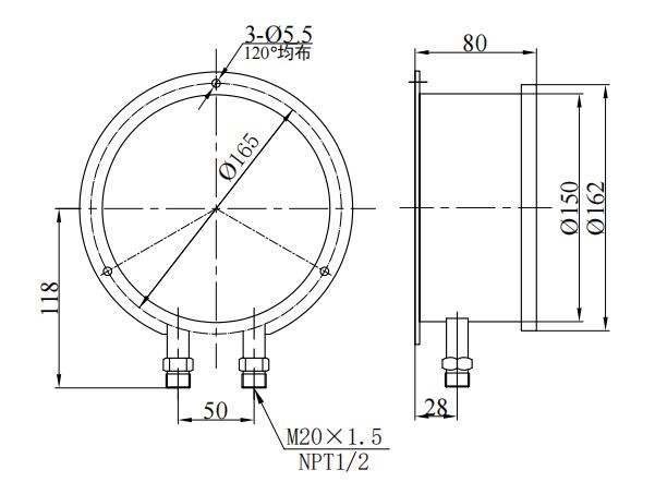 3. Velikost vlákna kloubu: Konvenční M20 × 1.5 , NPT1/2 (nebo označení zákazníka);