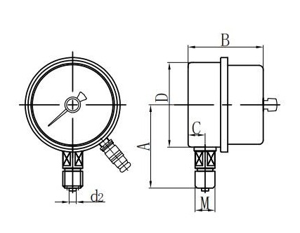 ◆ Aplikace: Tento typ přístroje je vhodný pro měření tlaku kapalin, plynů nebo párů bez nebezpečí výbuchu, bez krystalizace, bez tuhnutí a bez korozivního účinku na slitiny mědi a mědi. Pokud je vybaven vhodným obvodem, může do tlakového systému, který má být změřen a kontrolován, odeslat poplach nebo automatický ovládání.