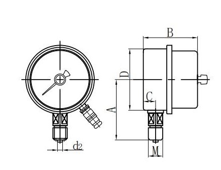 ◆ Aplikace: Tento typ přístroje je vhodný pro měření tlaku kapalin, plynů nebo párů bez nebezpečí výbuchu, bez krystalizace, bez tuhnutí a bez korozivního účinku na slitiny mědi a mědi. Pokud je vybaven vhodným systémem obvodu, může do tlakového systému, který má být změřen a kontrolován, odeslat poplach nebo automatický ovládání.