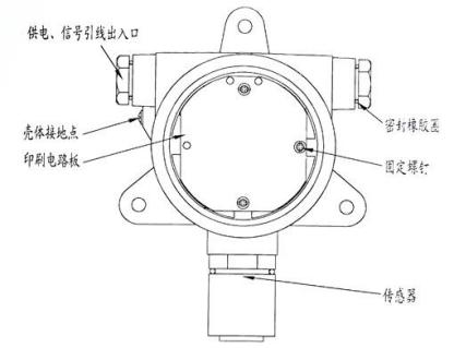 Obrázek 4 ukazuje popis terminálu základní desky detekce plynu: